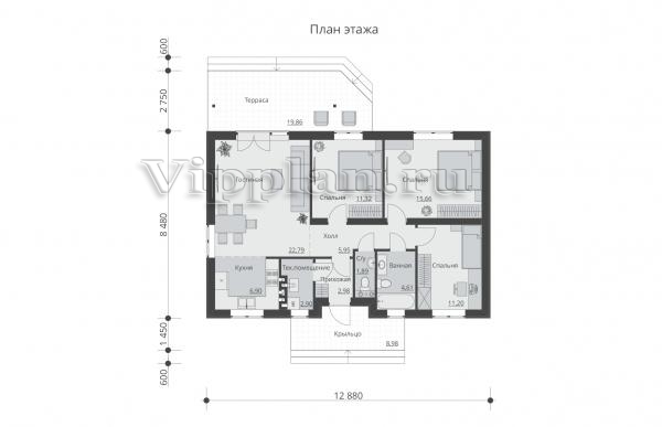 | Размеры дома: | 12.68м×12.88м |